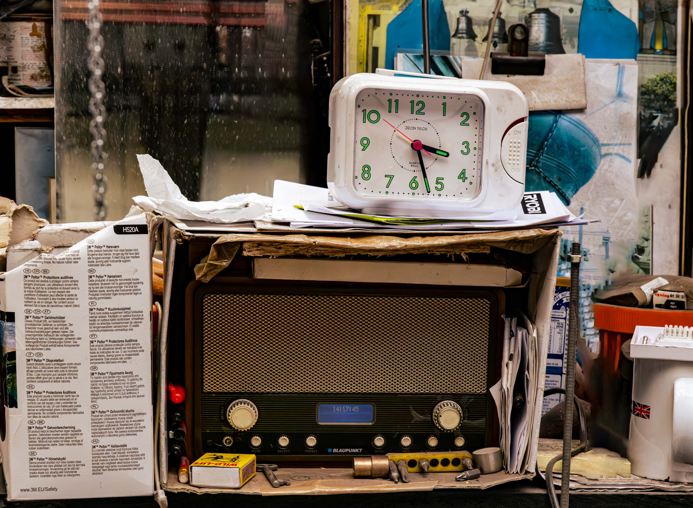 Some of the workbenches included years of personal mementoes from the workers.