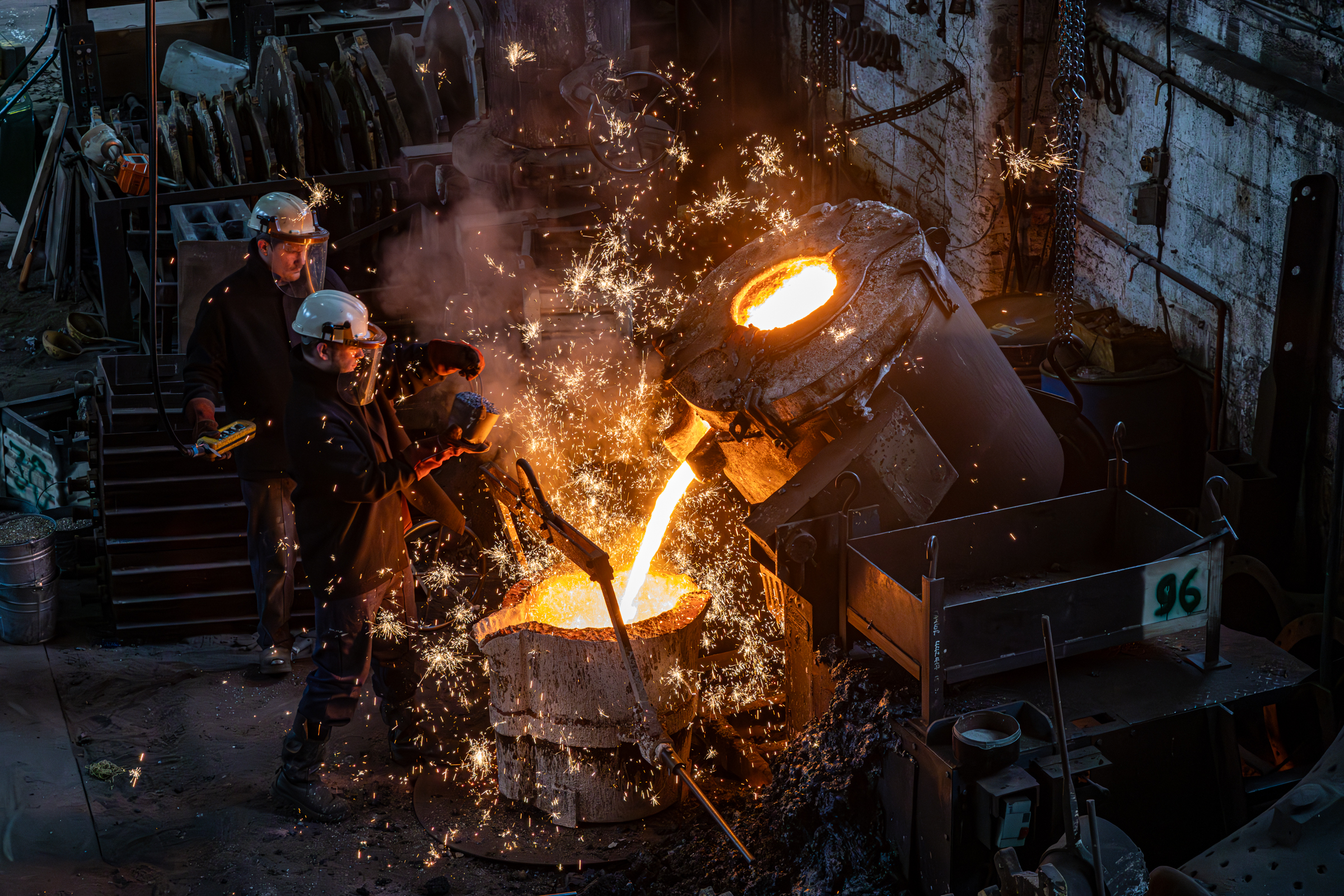 When the metal is up to temperature it is transferred to a vat ready for pouring.